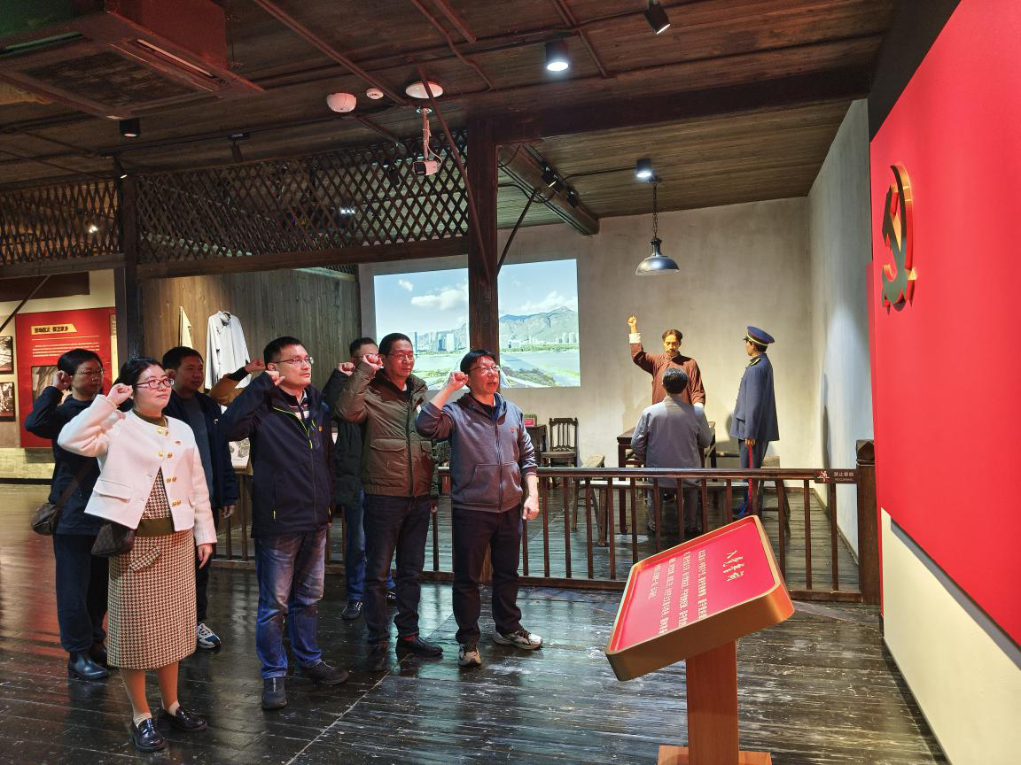 在马尾潮江楼廉政教育基地,中心党员干部参观了“千锤百炼”“工运领袖”“潮涌马江”“纪检先驱”“碧血丹心”“红色家风”“不忘初心 砥砺前行”七个版块实物展品、图文资料等生动的教育资料,详细回顾了共产党早期革命者王荷波同志为实现共产主义理想而献身革命事业的光辉历程,在场党员深受鼓舞,在庄严肃穆的宣誓厅,支部书记陈辉带领支部党员面向党旗,重温入党誓词。