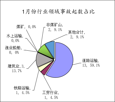 (一)事故总体情况。1月份全省共发生各类生产安全事故 22起、死亡26人,同比增加4起、10人,分别上升22.2%、 62.5%;没有发生较大事故,同比持平;没有发生重大以上事故,同比持平。