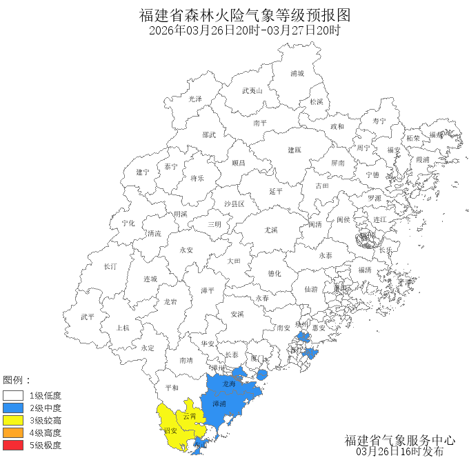 今天晚上到明天白天,诏安县、云霄县的森林火险气象等级为较高危险(三级)。