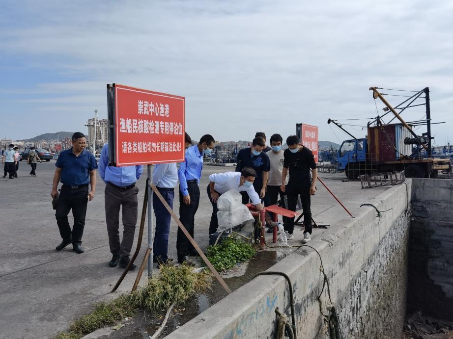图为:检查组在惠安县崇武国家中心渔港检查消防设施